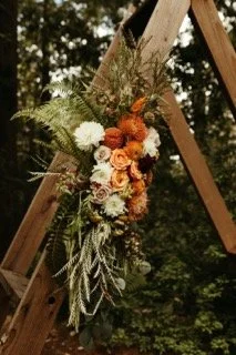 My floristry and event design work at this wedding held at the stunning Sequoia Retreat Center, was like stepping into a dreamy wonderland of natural beauty and enchantment. Drawing inspiration from the captivating colors of mauve, burnt oranges, terracotta, and abundant greenery, I created a captivating atmosphere that brought the couple's vision to life. Every detail was carefully curated, from the enchanting triangle ceremony arch adorned with gorgeous florals to the exquisite reception tables covered with lush centerpieces and candlesticks. The venue's natural beauty perfectly complemented the earthy color palette, creating a harmonious and romantic ambiance. Capturing the essence of the day was the talented Cali Cho Photography, whose skillful eye beautifully preserved every precious moment. Together, our collaborative efforts resulted in a wedding experience that will be cherished and remembered for a lifetime.
